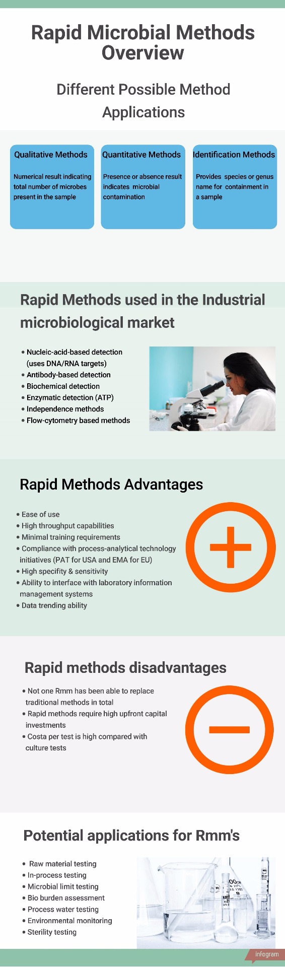 Rapid microbial methods and traditional testing methods have advantages and disadvantages. However, it is difficult get a clear overview if you start engaging with these methods. We have compiled the facts into a infographic about the key aspects of Rmm's. The infographic is as PDF format available in our Download section.